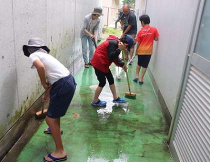 例年、プール清掃は児童と教員で行っていましたが、とても大変な作業で、裏の通路などは手が回らず、そのままになっていました。今年度は保護者の皆様のお力をお借りすることで、今までやりきれなかったところまで、きれいにすることができました。