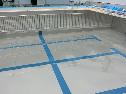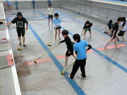 浅いプールがきれいになったら、深い方のプールの番です。濁っていた水がなくなり、底面・側面がぴかぴかになりました。(輝いています!)