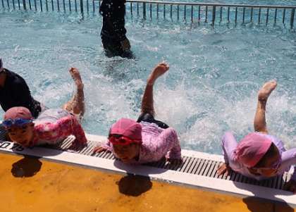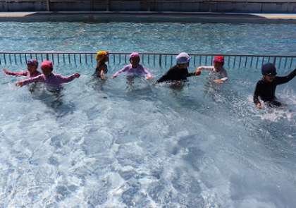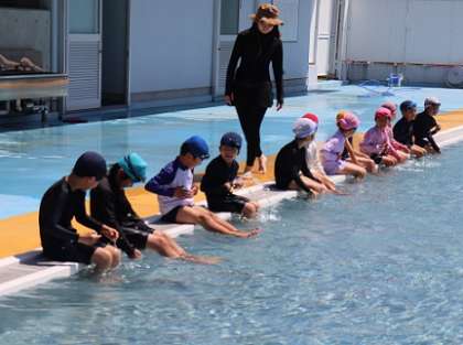 6月18日(水)1・2年生 プール開き1 公開日 2025/06/18 更新日 2025/06/18 お知らせ 2日間延期になり、待ちに待ったプール開きを行いました。1年生は初めてのプールです。はじめは恐る恐る水に入りましたが、一度入ってしまうとすっかり水に慣れ、楽しく水泳学習を行いました。