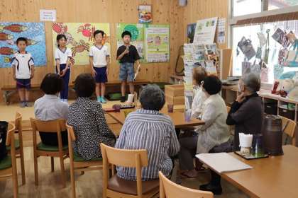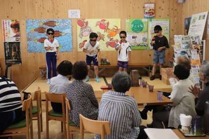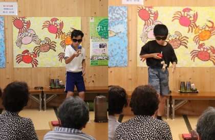 6月20日(金)4年生 「しきしまの家」交流会2 公開日 2025/06/20 更新日 2025/06/20 お知らせ けん玉パフォーマンスの様子です。衣装のサングラスをかけ、音楽に合わせて次々に技を決めていきます。緊張からか、うまくいかないときもありましたが、動じず、パフォーマンスを続けました。 参観者の方からは「みなさんの、失敗しても何度も挑戦する姿を見て、私もあきらめずに頑張ろうと思いました」とのお言葉をいただきました。4年生のみなさん、大成功でしたね!