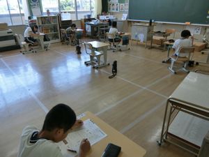6月30日(月)3年生 今日の様子 公開日 2025/06/30 更新日 2025/06/30 お知らせ 写真上:理科のテスト中です。お邪魔をしないように、そっと退出しました。 写真中・下:テストが終わった後も、それぞれ自分の課題に黙々と取り組む3年生です。