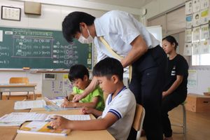 写真下:道徳科「がまんできなくて」 規則正しい生活をすることについて考え、話し合っています。