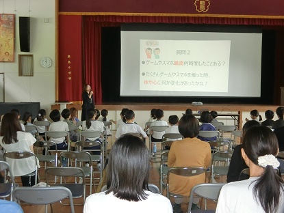 7月3日(木)学校保健委員会 公開日 2025/07/03 更新日 2025/07/03 お知らせ 学校保健委員会にご参加いただき、ありがとうございました。 スマホ依存症防止学会から講師をお招きして、親子で「電子メディア…なかなかやめられないそのわけは…」というテーマでお話を聞きました。 電子メディアを一切排除することは難しいですが、脳や体に及ぼすリスクも知った上で正しく使うようにしていきたいですね。