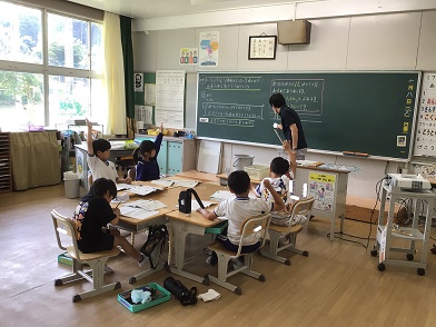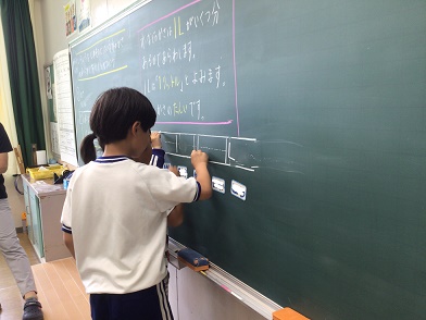 算数科「かさ」の学習の様子です。かさの単位「L」(リットル)を習いました。