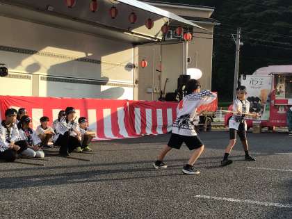敷島自治区の「ふれあい夏祭り2025」が開催され、本校の5・6年生が棒の手を披露しました。