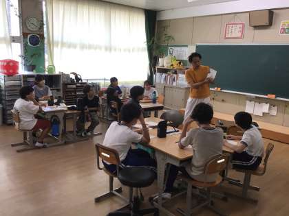 6年生は、夏休みの思い出や友達についてのビンゴをしていました。