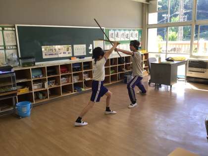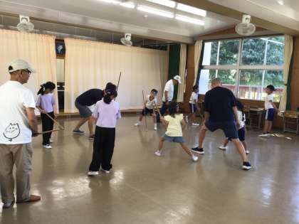夏休み明け、初の棒の手練習です。久しぶりで少し動きを忘れてしまっているところもありましたが、さすが、5,6年生の動きには迷いがありません。