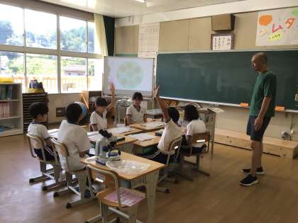 9月3日(水)5年生 今日の様子 公開日 2025/09/03 更新日 2025/09/03 お知らせ 理科「植物の実や種子のでき方」の授業の様子です。アサガオのおしべとめしべを顕微鏡を使って観察しました。「めしべの先はパーマかかってるみたい」「おしべにたくさん花粉がついていた」など、観察して気付いたことを話し合いました。