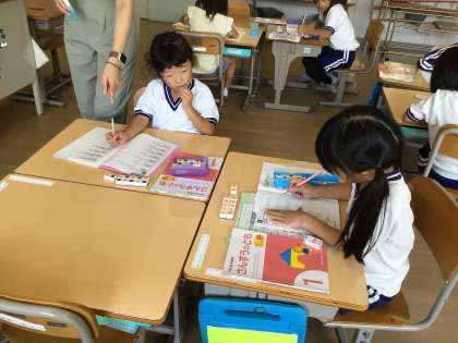 9月8日(月)1年生 今日の様子 公開日 2025/09/08 更新日 2025/09/08 お知らせ 算数科「10よりおおきいかず」の学習で、数字の練習をしています。1つのマスに2つの文字をバランスよく書きます。はみ出さないように、丁寧に書いていました。
