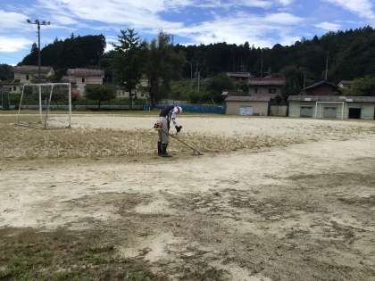 夏休み明け、すっかり「草原」になってしまっていた運動場や校庭を、公務手さんと校内整備員さんが少しずつ草を刈り、きれいにしてくださっています。日に日に草が生えている部分が少なくなっています。子どもたちの外の活動もしやすくなりました。ありがとうございます。