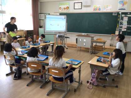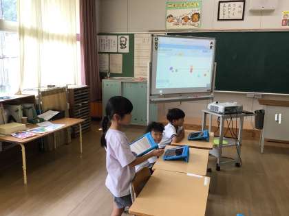 9月17日(水)1年生 今日の様子 公開日 2025/09/17 更新日 2025/09/17 お知らせ 学活の授業の様子です。学習用タブレットのポジショニング機能を使って「どっちがすき?」を行っています。2つのものについて、どちらの方がどのくらい好きか、ポジショニングで表し、その理由を発表しています。「ハンバーガー」と「ピザ」について、それぞれ「セットがあるから」「チーズがのってておいしいから」などと、自分の考えをしっかり話していました。