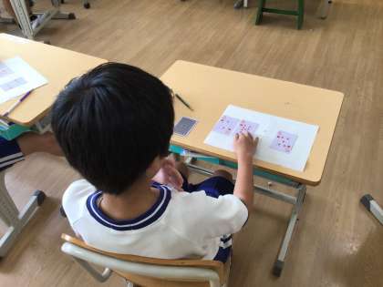 9月17日(水)3年生 今日の様子 公開日 2025/09/17 更新日 2025/09/17 お知らせ 算数科「あまりのあるわり算」で練習問題に取り組んでいます。計算は正確にできるようになりましたが、文章問題では、問題によっては「答えに1を足す」ものもあり、問われていることをよく考えて解いていました。 その後、トランプのカードを並べてわり算の問題を作り、あまりの数の多さを競うゲームで楽しみました。