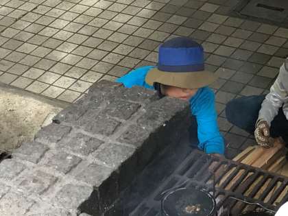 かまどにかけた飯盒や鍋からおいしそうなにおいがしてきました。