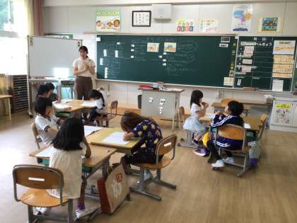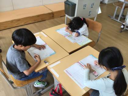 写真中・下:道徳科「そろっているけど」でみんなで使うものの使い方について考えたり話し合ったりしました。授業の終わりには、今後、自分はどうしていきたいかをそれぞれ道徳ノートに記しました。