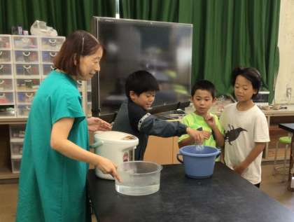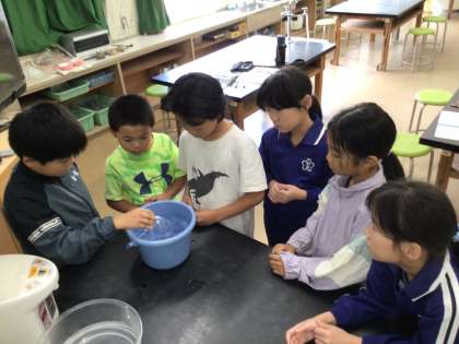 9月29日(月)4年生 今日の様子 公開日 2025/09/29 更新日 2025/09/29 お知らせ 理科「ものの温度と体積」の学習で、とじこめられた空気を温めたり冷やしたりして、体積の変化の様子を観察しました。 空気の入ったペットボトルを95度のお湯につけると、ペットボトルが若干膨張し、氷水に入れると、ペットボトルがへこみました。そのことから、空気の体積が温度によって変わることが分かりました。