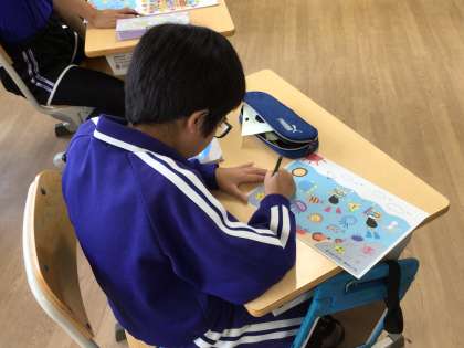 10月1日(水)3年生 今日の様子 公開日 2025/10/01 更新日 2025/10/01 お知らせ ALTとの外国語活動の様子です。アルファベットの発音を練習していました。日本人には難しいとされている「L、M、N、R」を発音するときに、唇や舌がどうなっているのかを、ALTから丁寧に説明を受けていました。その後、アルファベットの文字の形を体で表しながら発音の練習をしたり、絵の中からアルファベットを探したりする活動をしました。