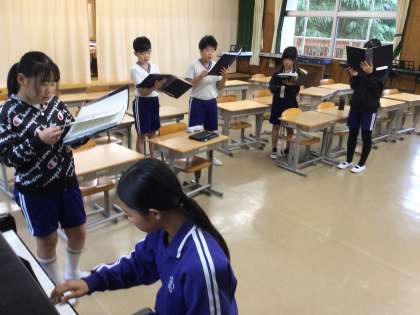 卒業式で歌う「僕のこと」をパート別に練習をしています。難しい曲ですが、6年生みんなのやる気が感じられます。心に残る合唱になるよう、頑張ってくださいね。