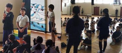 10月6日(月)6年生 今日の様子 公開日 2025/10/06 更新日 2025/10/06 お知らせ 写真上・中:全校朝会の後の少しの時間を使って、合唱練習を行っていました。円になって互いの表情を見ながら歌います。歌った後にはすぐにみんなで気づいたことを出し合います。みんなでレベルアップを目指す姿がとても素敵です。 写真下:5年生の発表後の感想交流では、6年生がよいところをたくさん発表していました。どんなときにも手本となる、頼もしい6年生です。