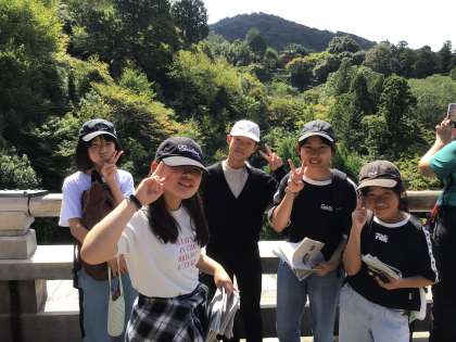清水寺に到着しました。 こちらもよく晴れていて暑いほどです。舞台からの景色を堪能しました。
