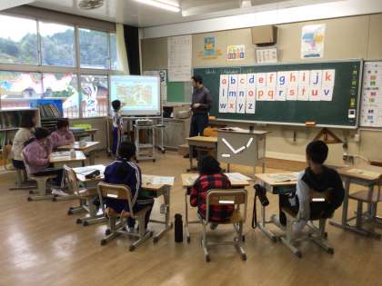 10月22日(水)4年生 今日の様子 公開日 2025/10/22 更新日 2025/10/22 お知らせ ALTとの外国語活動の様子です。ALTが出すヒントをもとに、教科書の絵の中から英単語を探します。 「six letters」「two “o”s」 子どもたちはしっかり「school」を見つけることができました。