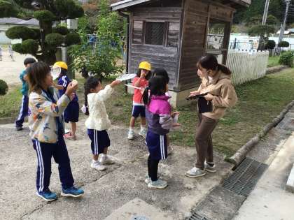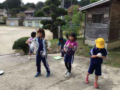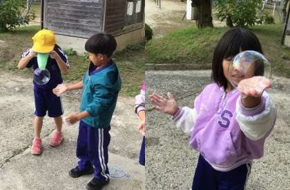 10月24日(金)1年生 今日の様子 公開日 2025/10/24 更新日 2025/10/24 お知らせ 生活科「しゃぼんだまあそび」の様子です。自分たちで道具をいろいろと工夫しながら、楽しんでいました。果物の保護用のネットや段ボールでもシャボン玉ができ、子どもたちのアイディアに感心しました。