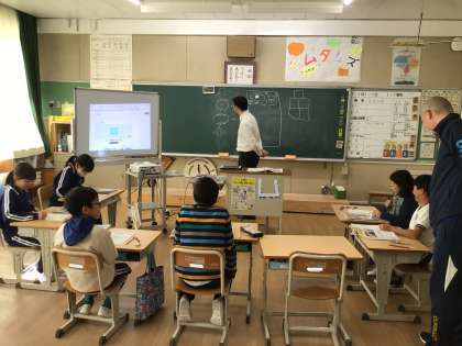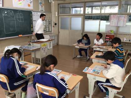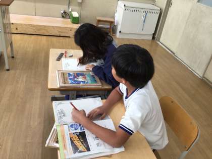 10月29日(水)5年生 今日の様子 公開日 2025/10/29 更新日 2025/10/29 お知らせ ALTとの外国語の授業の様子です。ハロウィーンが近いので、「Let's draw a Monster」として、モンスターを描いていきます。配られた用紙にALTが示した体のパーツをさいころの目が出た数だけ描きます。左隣の人に回してまた次のパーツを描き加えていきます。頭が2つ、目が3つ、口が4つ…。不気味なものからちょっと愛嬌のあるものまで、様々なモンスターが誕生しました。