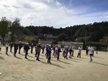 速く走るには、どのようなことが大切なのか、青戸選手の楽しいお話と分かりやすい実技指導で、子どもたちは終始笑顔で実践していました。
