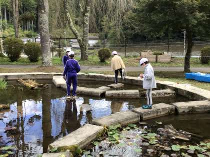 10月30日(木)太陽の時間の様子 公開日 2025/10/30 更新日 2025/10/30 お知らせ 2限が終わると、たくさんの空き容器をかかえて一目散に丸池に集まってくる子たちがいます。丸池の生き物たちと、仲よく遊んで(?)います。 フラフープの、こんな使い方が! 1限に1年生が作っていた「虫がよろこぶおうち」。こんなに「おしゃれ」なおうちが出来上がっていました。