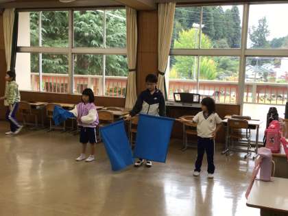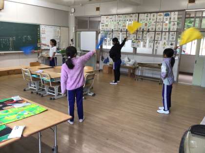 11月5日(水)運動会練習 公開日 2025/11/05 更新日 2025/11/05 お知らせ フリータイムに応援合戦のフラッグ練習を行いました。5・6年生が手本を示しながら、丁寧に教えます。全校みんなで作り上げる演目です。動きがそろうように、がんばります!