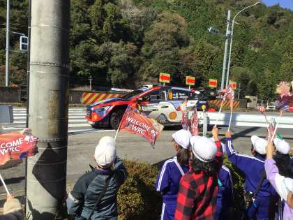 エンジン音が聞こえても、なかなかラリーカーが現れず、子どもたちは通りかかるすべての車に声援を送っていました。