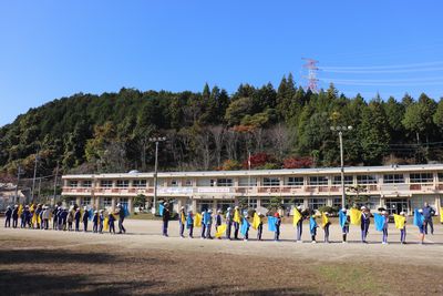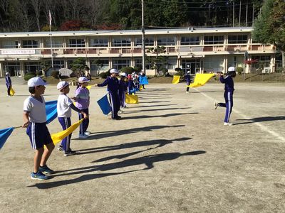 11月10日(月)応援練習1 公開日 2025/11/10 更新日 2025/11/10 お知らせ 応援合戦の入退場の練習をしました。全体への指示や、赤白各チームのごとの説明等、すべて6年生が行いました。少し複雑な動きをするときには、6年生が1年生に声をかけたり手本を示したりすることで、1年生もしっかり練習についていきます。