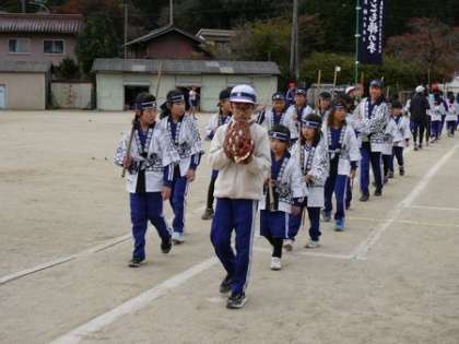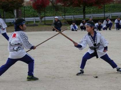伝統芸能「敷島子ども棒の手」 今日は、白法被の児童のみ、衣装を着けて練習しました。