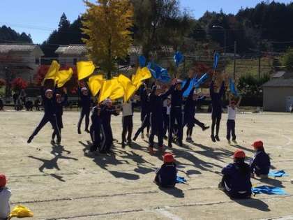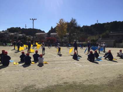 白組の応援です。掛け声がよく出ています。タイミングの難しいところも、声を掛け合うことで、きれいにそろいました。