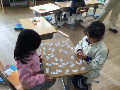 11月20日(木)1年生 今日の様子 公開日 2025/11/20 更新日 2025/11/20 お知らせ 算数科「たしざん」の学習の様子です。たし算の答えが、教師が示した数になる式の計算カードを探します。計算だけでなく、答えから式を導き出すことができるようになった1年生です。