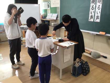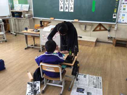 12月2日(火)4年生 今日の様子 公開日 2025/12/02 更新日 2025/12/02 お知らせ 講師の先生による書写指導の様子です。 子どもたちの目線で書くポイントが分かるように、反対側から書いてくださっています。反対側から書いているとは思えない、整った美しい文字にびっくり。 教えていただいたことを確かめながら、丁寧に書きました。
