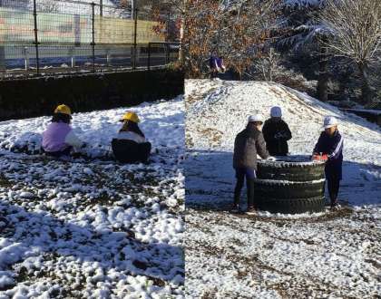 12月4日(木)雪が降りました1 公開日 2025/12/05 更新日 2025/12/05 お知らせ 道路や運動場には積もらなかったものの、今期初の雪に子どもたちはわくわく。 朝の会を済ませると、さっそく1〜3年生が外に出てきました。