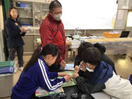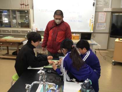 12月4日(木)6年生 今日の様子 公開日 2025/12/04 更新日 2025/12/04 お知らせ 理科「土地のつくりと変化」の授業の様子です。本日も講師の方をお招きし「地層のでき方」を学びました。 この地域の地盤は「花崗岩」「風化花崗岩」であることを教えていただき、お持ちいただいた花崗岩に、実際に触れてみました。「風化花崗岩」は手でも崩すことができますが、「花崗岩」はびくともしません。固い地盤の上に学校が建っていることが分かりました。