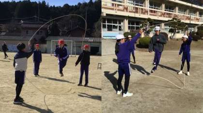 体育科の授業の様子です。なわとびの技術が前回紹介した時から、格段に上達していて驚きました。ダブルダッチのなわに入るのは、もうみんな迷いがありません。2回、3回、それ以上連続で跳び、なわから抜けるのもばっちりです。
