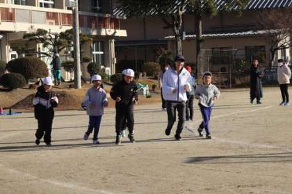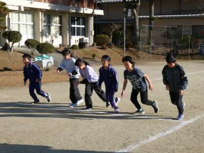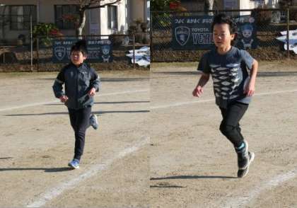 準備体操、ウォーミングアップをした後、元気よくスタートしました。お家の方の声援もあり、みんないつになくハイペースです。