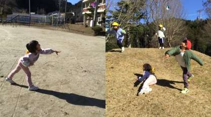 12月16日(火)1年生 今日の様子 公開日 2025/12/16 更新日 2025/12/16 お知らせ 生活科「きたかぜともなかよくなれるよ」の学習で、風を生かして遊べるものとして、紙飛行機を作りました。 それぞれ自分で作った紙飛行機を手に、築山の上から飛ばします。スーッと滑らかに飛んだり宙返りしたりして飛ぶ飛行機に、子どもたちは歓声を上げながら楽しんでいました。