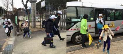 写真上:冬休みが終わり、子どもたちが元気に登校してきました。