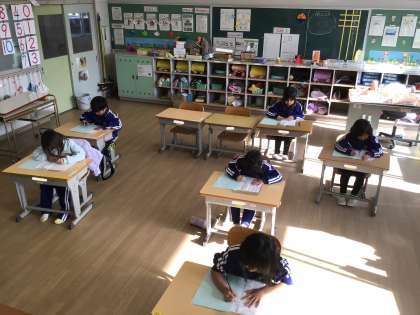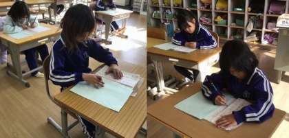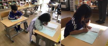 1月7日(水)1年生 今日の様子 公開日 2026/01/07 更新日 2026/01/07 お知らせ 1年生にとって、初めての書き初め大会です。 手本を折りながら、一行ずつ丁寧に書いていました。硬筆は文字の数が多いので、一枚書き上げるのに時間がかかり、集中力を必要とします。みんなとてもよくがんばりましたね。よい作品ができました。