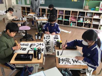 6年生にとっては楷書での書き初めはこれが最後です。これまで学んだことを十分に生かしたよい作品ができました。