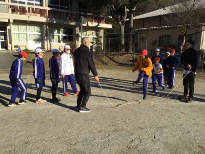 高学年は、円陣を組んで、気合を入れて始めました。とてもスムーズに跳んでいきます。