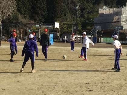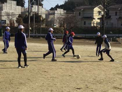 体育科「サッカー」の授業の様子です。みんなが楽しくプレイできるように、自分たちでルールを考えながら行っていました。スポーツなので「どうしたら勝てるか」という作戦を立てることはとても大切ですが、「みんなが楽しくなるように」と相談しているところがとても素敵な取組だなと思いました。
