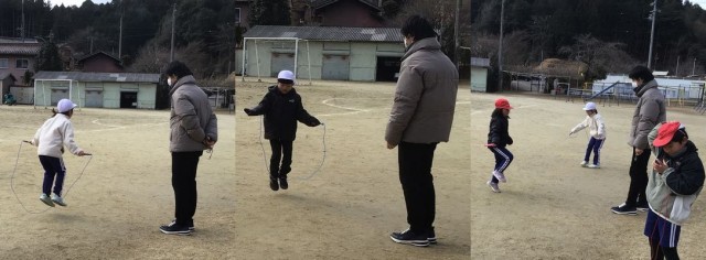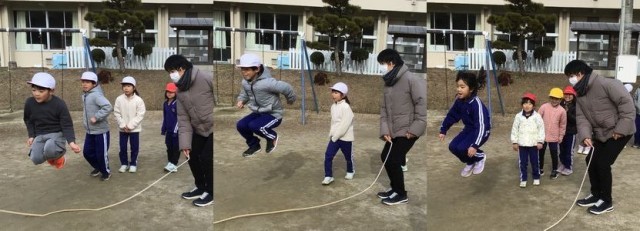 体育科「なわ跳び」の授業の様子です。練習をして、何度も検定を受ける子もいます。8の字跳びもずいぶん上手になり、タイミングよく縄に入れるようになりました。