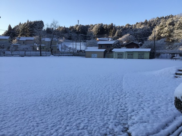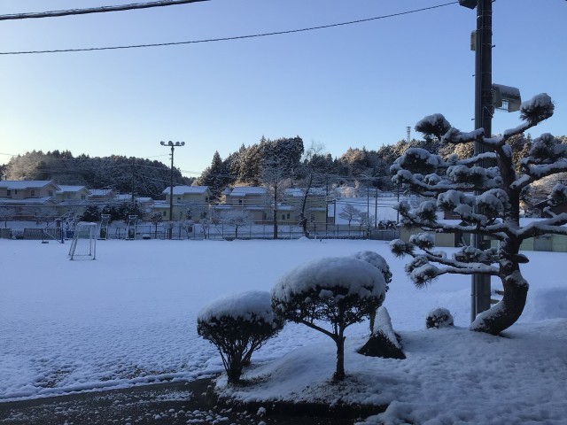昨日の下校時に降り始めた雪に、子どもたちは「明日、積もるかなあ」と楽しみに帰っていきました。子どもたちの期待どおり、運動場一面雪景色です。みんなわくわくしながら登校してくることでしょう。