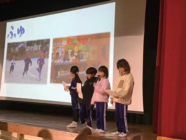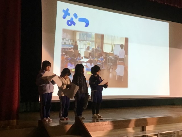 1年生の発表の様子です。一年間の出来事を振り返ったり、一人一人できるようになったことを発表します。