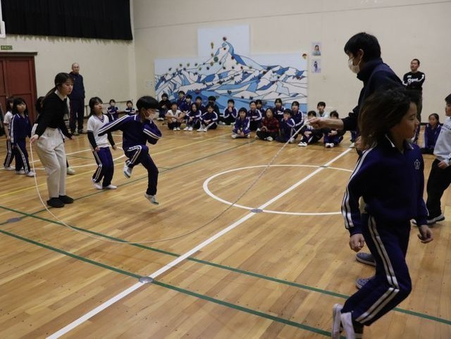 8の字跳び、1年生の様子です。なんと、全員が跳べるようになりました。