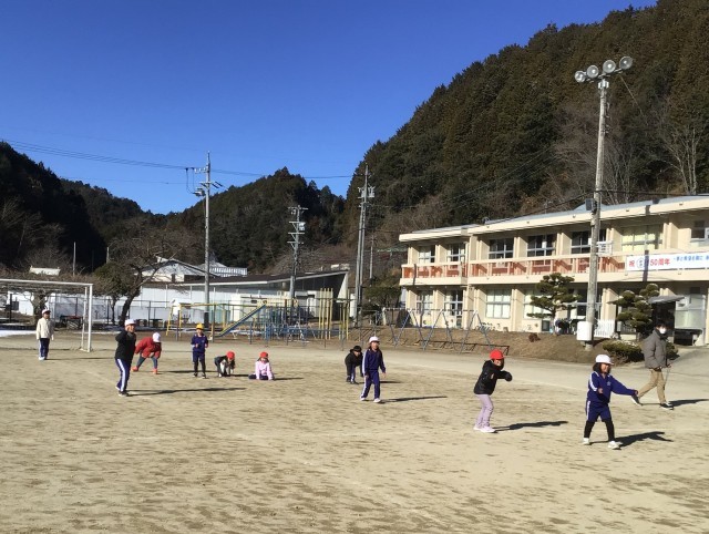子どもたちのにぎやかな声が聞こえてきたので行ってみると、「だるまさんが転んだ」をしていました。「だるまさん」までかなり距離があり、なかなかだるまさんまでたどり着けませんが、少しずつ進む子、果敢に走っていく子、ポーズに凝る子など様々で、とても楽しそうでした。